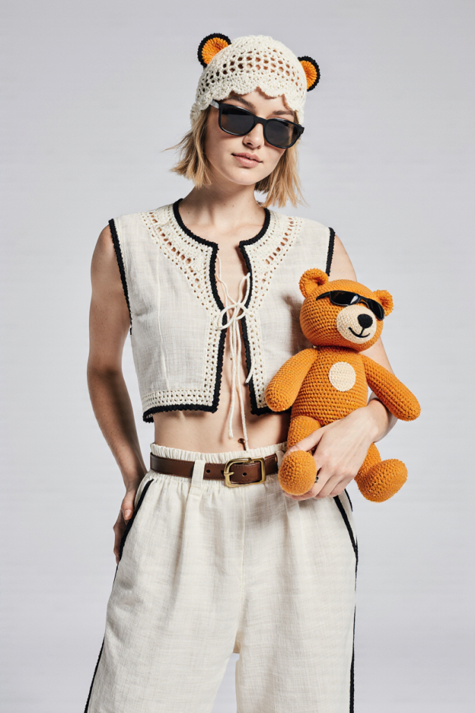 Вязаная одежда, рюши и кружево выходят на новый уровень. Составляем лёгкие образы с классическими брюками, джинсами, юбками похожей фактуры. Если хочется поиграть с многослойностью, надеваем кроше поверх шёлковой юбки или платья-комбинации.