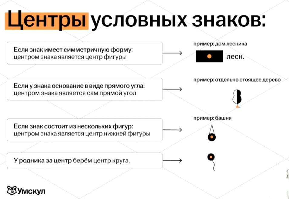 Вот подсказка для центров условных знаков — запоминай и забирай картинку!