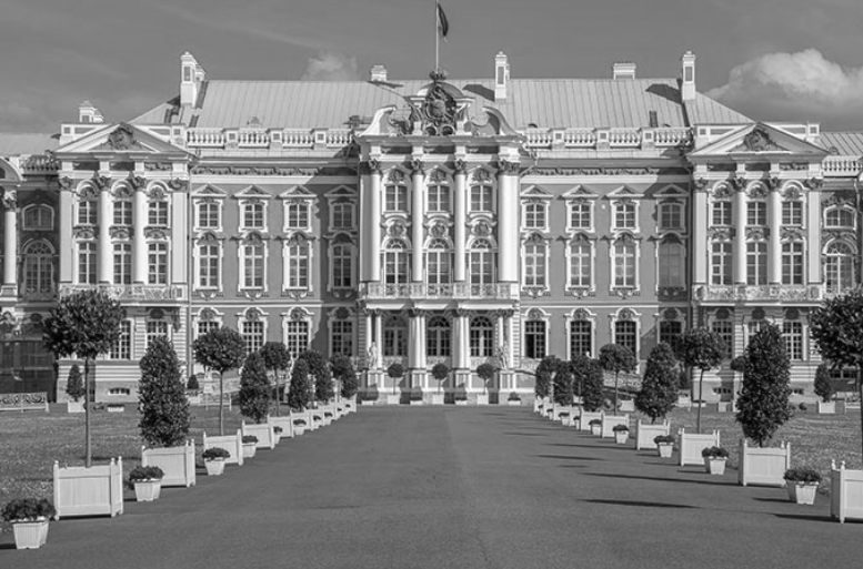 - Колонны. В Зимнем дворце их гораздо больше. Многие из них сдвоенные и как бы наслаиваются друг на друга. В Екатерининском дворце всё немного скромнее: всего четыре колонны по центру и две по бокам.