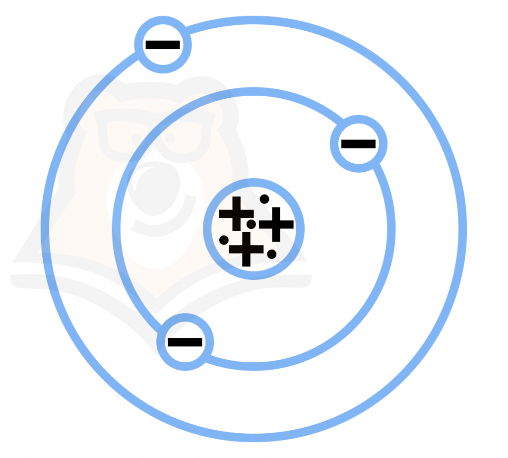 2. Таким образом, заряд частицы \(Z = 3\), то есть ядро атома лития содержит 3 протона, а сам атом — 3 электрона.