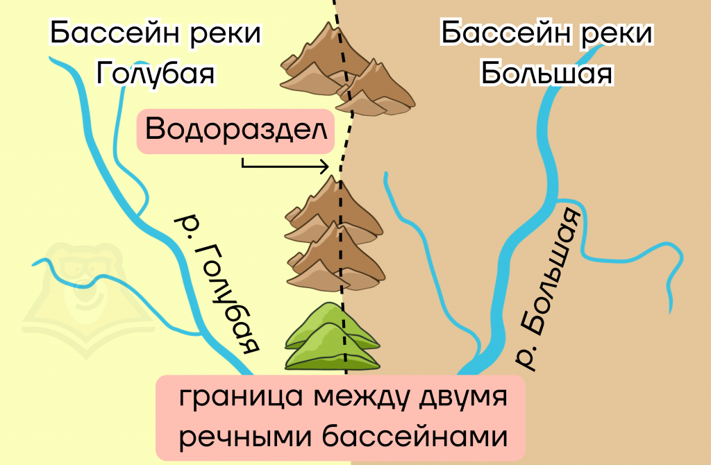 Водораздел – это условная линия на поверхности Земли, разделяющая бассейны нескольких водных объектов.