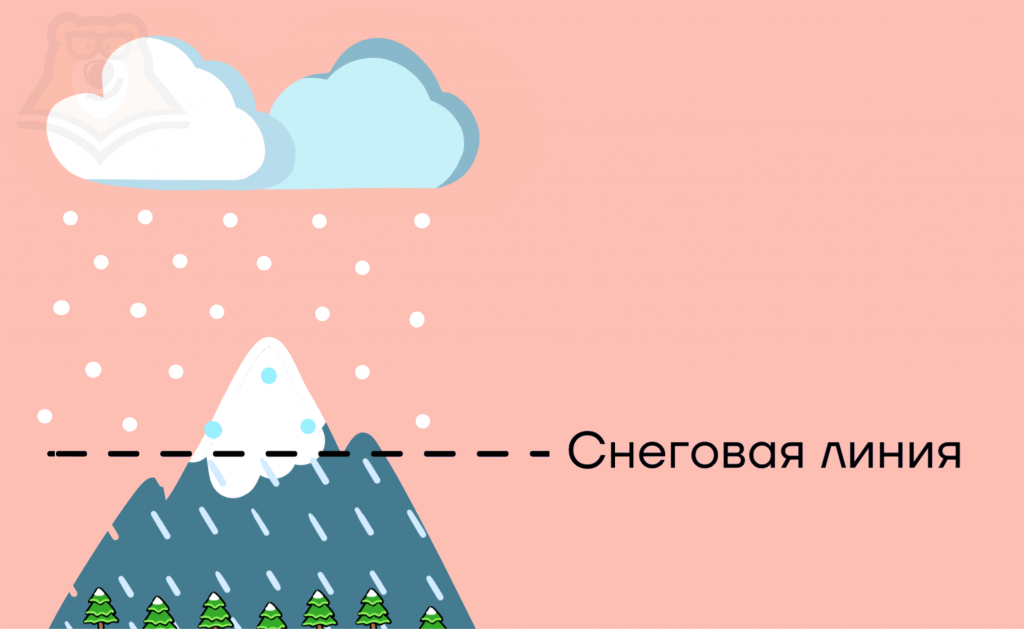Граница на местности, ниже которой снег не стаивает, а накапливается, — снеговая линия. Ее высота зависит от климата: в полярных областях она ниже (на уровне моря), чем на экваторе (5-6 км).