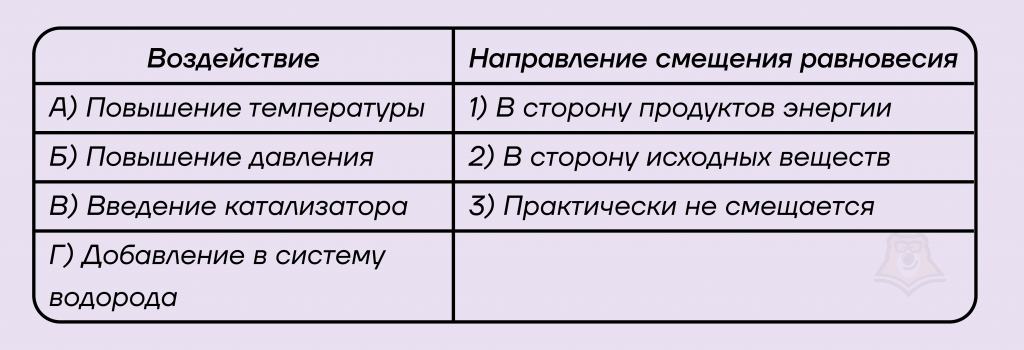 Задание. Установите соответствие между способом воздействия на равновесную систему, в которой протекает реакция:
