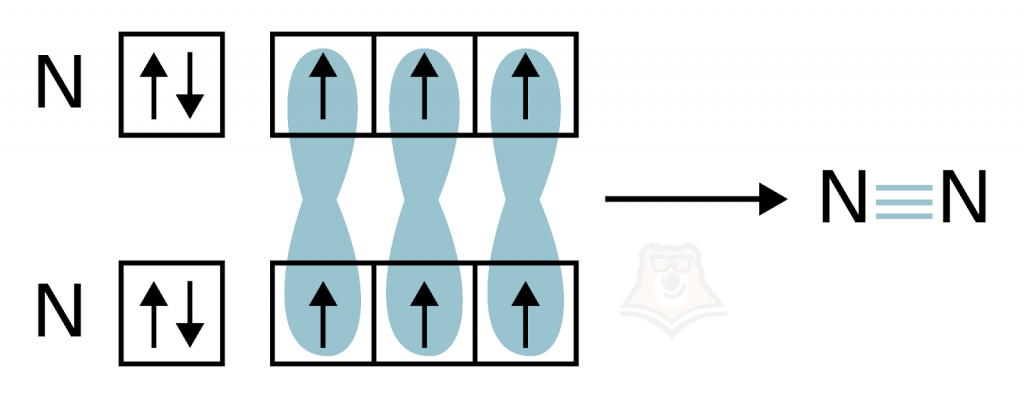 В молекуле азота реализуется тройная связь — между атомами азота в молекуле N2 располагается три общие электронные пары. Разрушить такую связь крайне затруднительно, поэтому азот очень «ленив» — химически неактивен. Для взаимодействия с чем-либо ему нужны будут, как правило, жесткие условия: высокая температура, высокое давление или катализаторы.