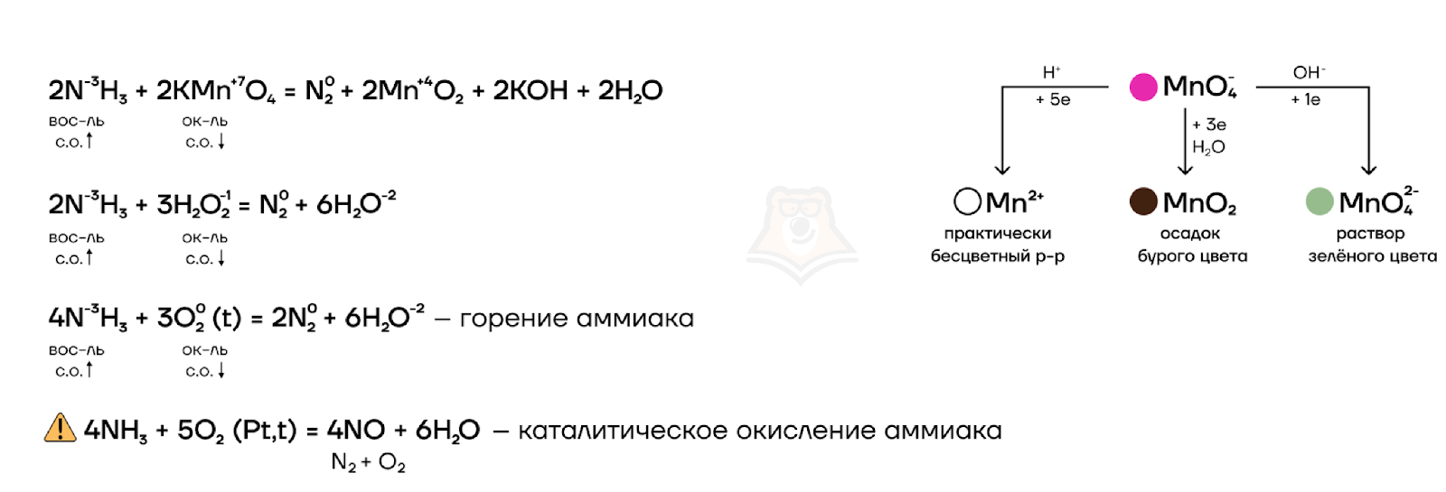 - Аммиак является типичным восстановителем за счет низшей степени окисления азота -3.