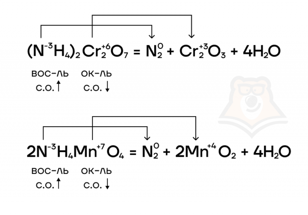 2.(N-3H4)2Cr+62O7 = N02 + Cr+32O3 + 4H2O — ОВР