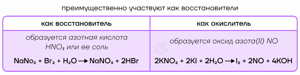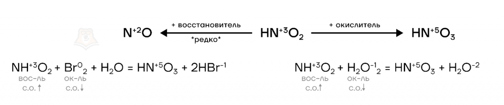 В большинстве таких реакций азот, как восстановитель, повышает свою степень окисления до ближайшей устойчивой 0.