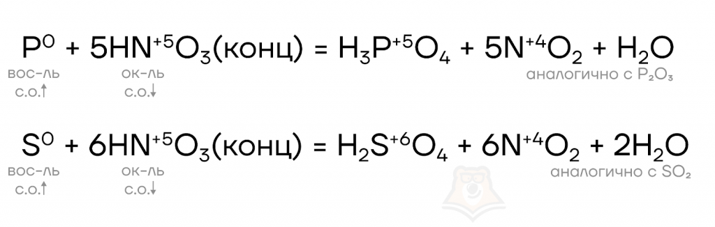 Взаимодействие с металлами мы разобрали, а как реакция пойдет, если восстановителем будет неметалл? Продуктом восстановления азотной кислоты чаще всего является диоксид азота (NO2), а продукт окисления неметалла — его высшая кислородсодержащая кислота. С разбавленной кислотой реакция протекает до NO.
