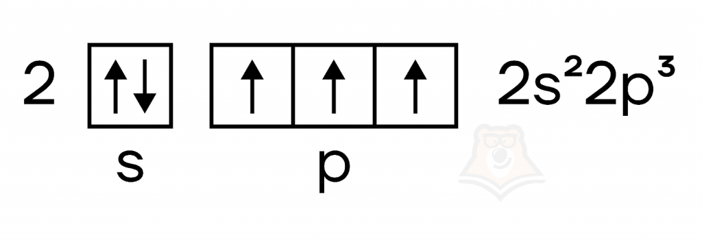 Рассмотрим электронную конфигурацию внешнего слоя атома азота.