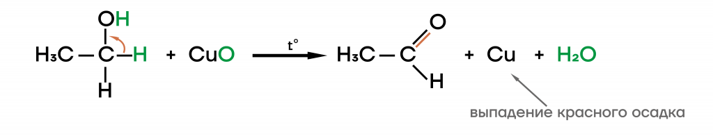 Окисление оксидом меди с образованием альдегида и красного осадка меди.