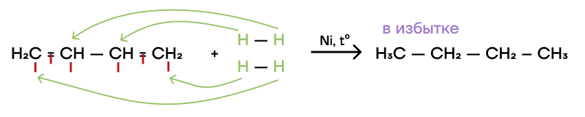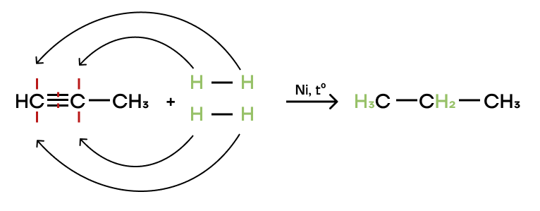 Алкины имеют тоже две пи-связи, как и алкадиены, поэтому происходит присоединение за счет разрыва этих связей и образование алкана.