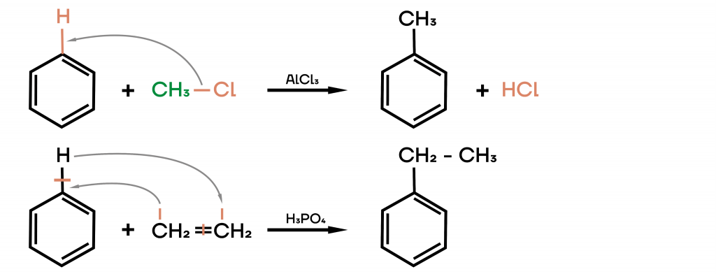 Арены с галогеналканами реагируют до образования другого более крупного арена.