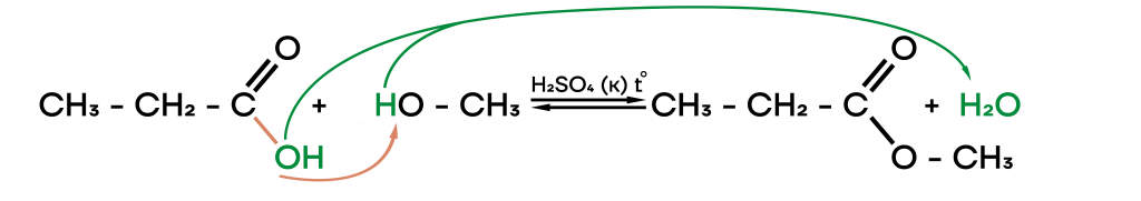 Реакция этерификации — взаимодействие карбоновой кислоты и спиртов.