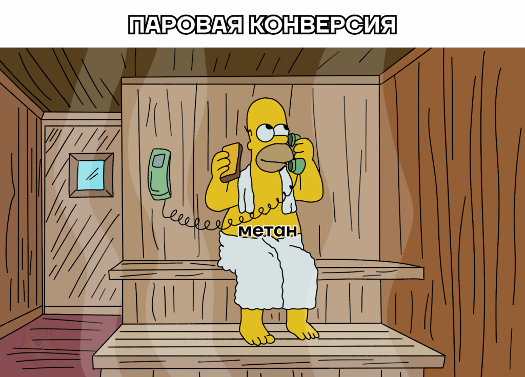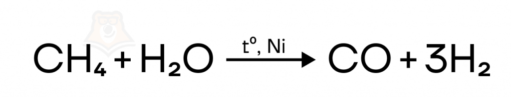 При обработке метана водяным паром в присутствии никелевого катализатора получают синтез-газ.