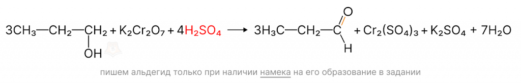 При использовании более сильных окислителей, таких как перманганат или бихромат калия, получить из первичного спирта альдегид становится непростой задачей. Дело в том, что альдегиды в таких условиях окисляются дальше, конечным продуктом окисления являются карбоновые кислоты.