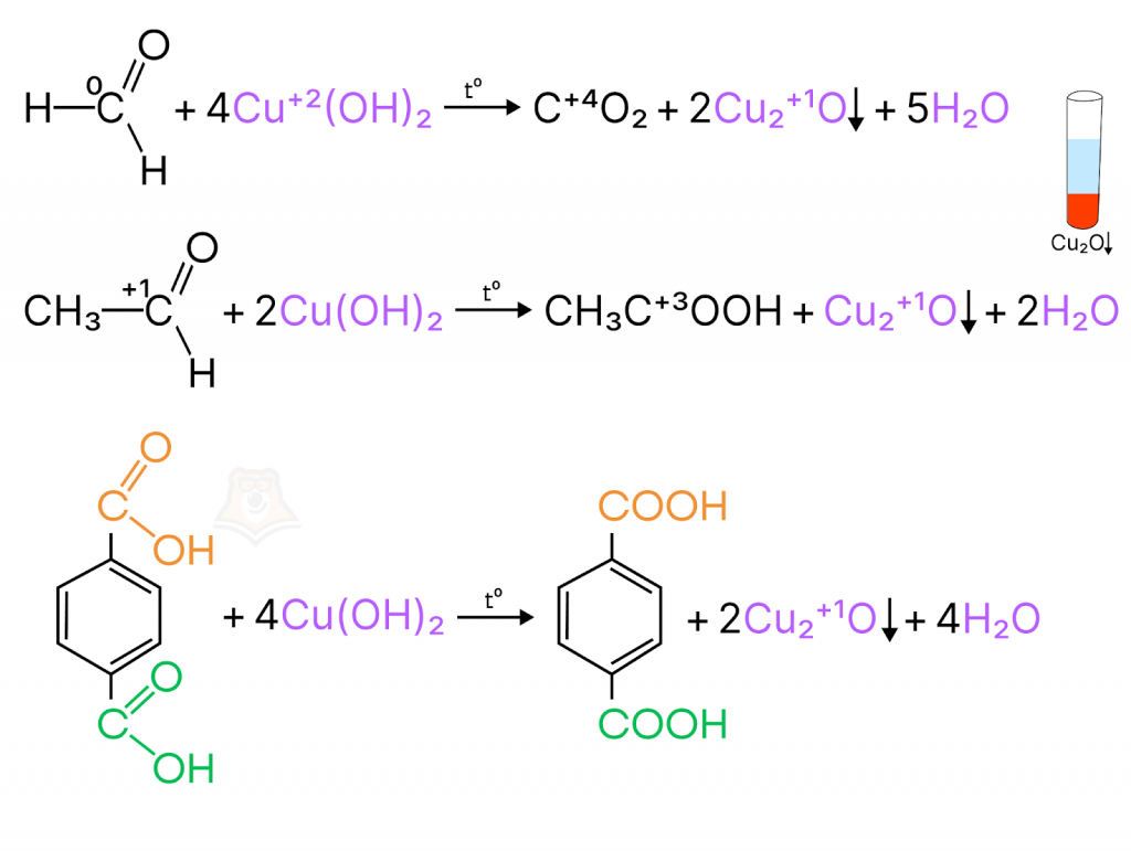HCOOH + 2Cu(OH)2 → CO2 + Cu2O + 3H2O