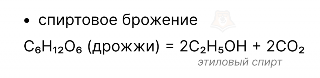- Спиртовое брожение — процесс, сопровождающийся образованием этилового спирта.