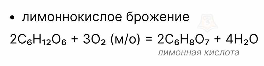 - Лимоннокислое брожение же сопровождается образованием лимонной кислоты.