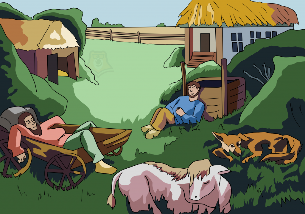 Жизнь в Обломовке раскрывается в 9 главе произведения, которая называется «Сон Обломова». Все, чем занимаются жители в этой деревне — едят и спят: «…все дышало тою же первобытною ленью, простотою нравов, тишиною и неподвижностью…».
