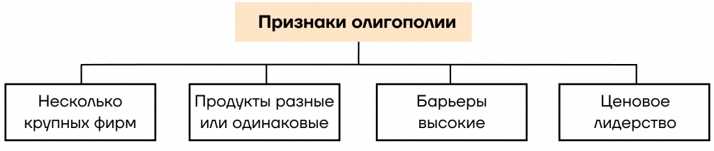 Одинаковые или схожие товары производятся небольшим числом фирм, которые поделили рынок и конкурируют между собой.